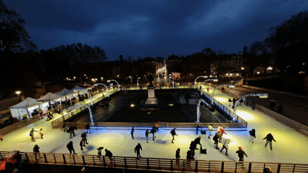 La gigantesca pista di pattinaggio a Lucca, diventata fenomeno pop dell’inverno toscano